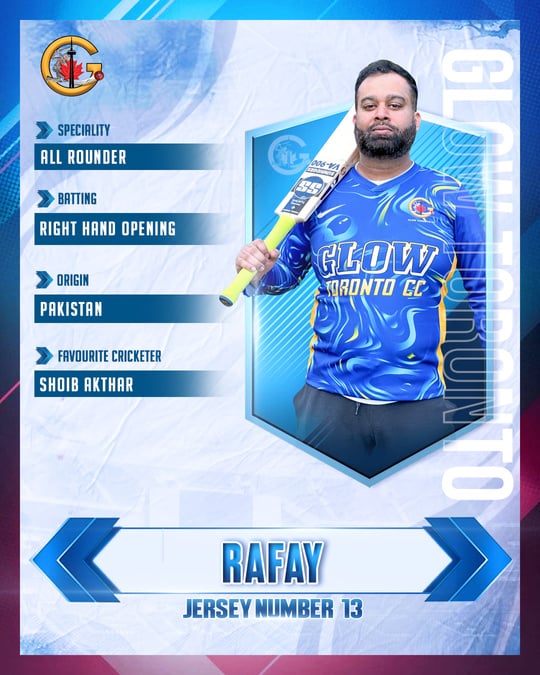 Glow Toronto Cricket Club is to nurture top cricket talent in a diverse and inclusive environment, championing integrity, discipline, and respect. We're dedicated to shaping the future of Canadian cricket, one player at a time.